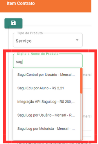 Se ao acessar Jurídico > Contratos, ao criar ou editar um Contrato, ao tentar inserir ou editar um item do contrato, no campo Descrição do Produto, ao digitar as 3 primeiras letras da descrição do produto/serviço, a lista não aparece ou o serviço/produto desejado não aparece na lista exemplificado na imagem abaixo:
