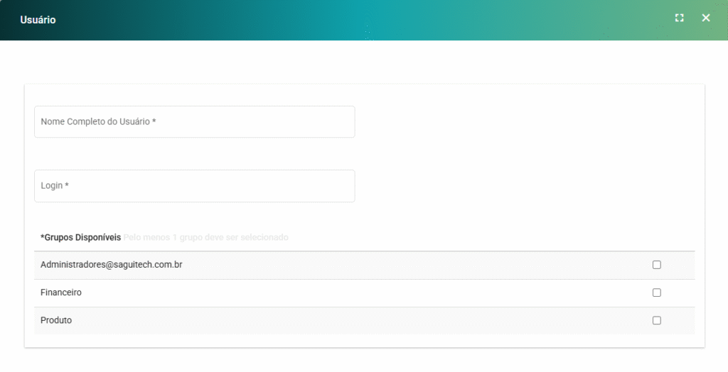 - Grupos Disponíveis: Grupos que esse usuário terá acesso;