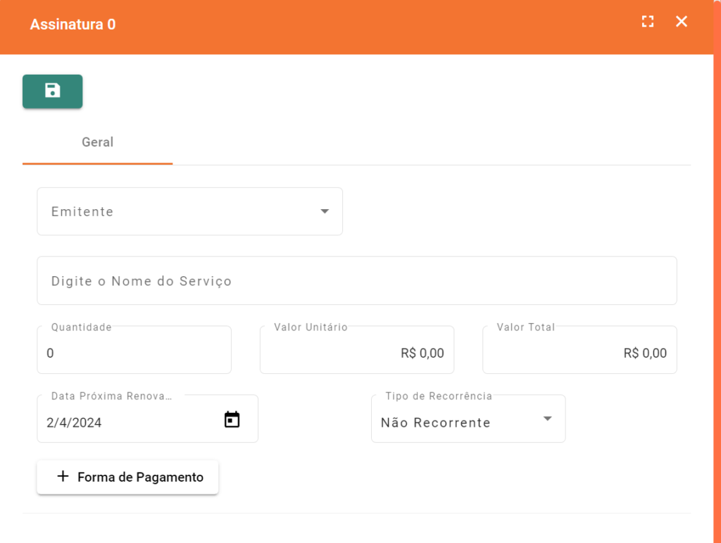 - Data da próxima renovação: Quando o sistema faturará esse serviço da próxima vez;