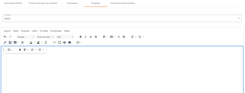 Permite que o usuário selecione o Template desejado, e realiza alterações específicas para o Contrato em questão.
