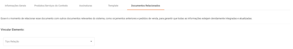 Este passo possibilita que você relacione outros documento relevantes, que devam ser vinculados ao Contratos, pode ser um Pedido de Venda, um Orçamento, ou até mesmo um Contrato Anterior.