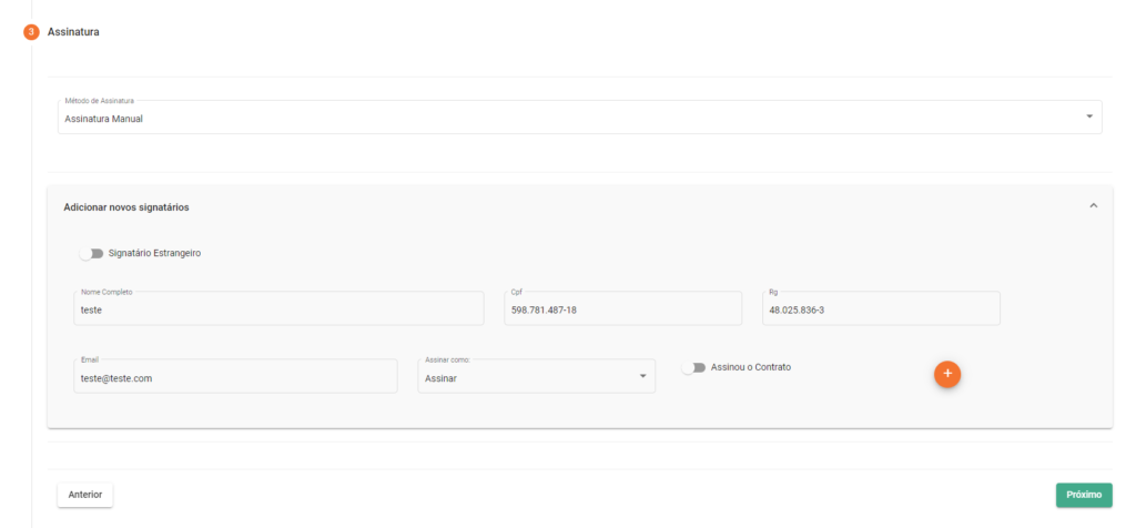 - Signatário Estrangeiro?: Informa se o signatário do contrato é estrangeiro, o que pode influenciar nos documentos exigidos ou no processo de assinatura;