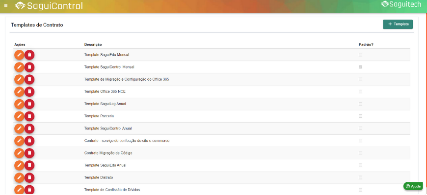 Nessa próxima tela, todos os Templates criados para a sua empresa aparecerão.