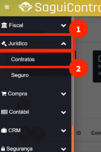 No menu superior a esquerda, acesse Jurídico > Contratos