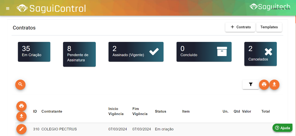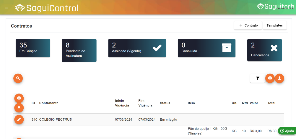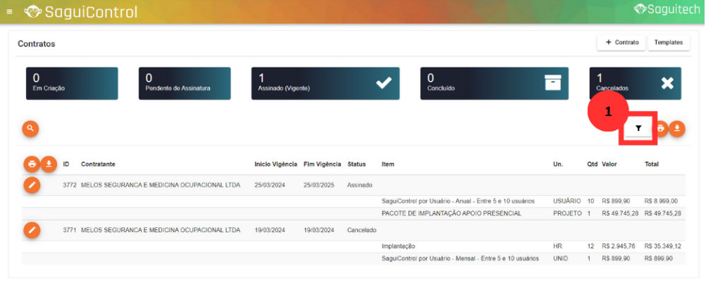 🔎 Caso queira saber um pouco mais sobre como os elementos dessa tela funcionam, leia o artigo: Entenda a Tela de Gestão de Contratos