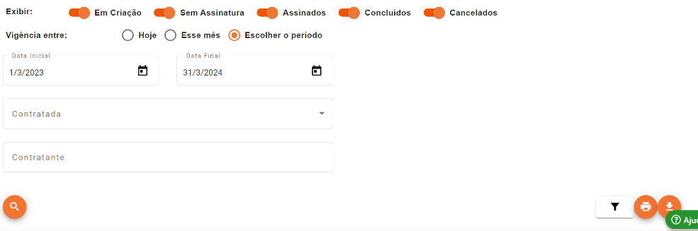 Escolha quais contratos você gostaria de buscar no sistema, através das opções de filtro que aparecerão