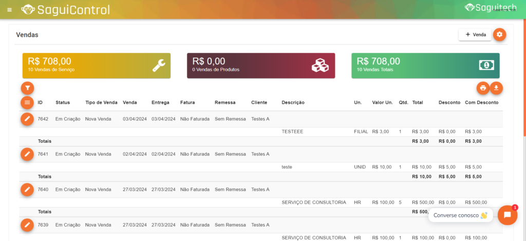 Você será redirecionado para a tela de Gestão de Pedidos de Venda