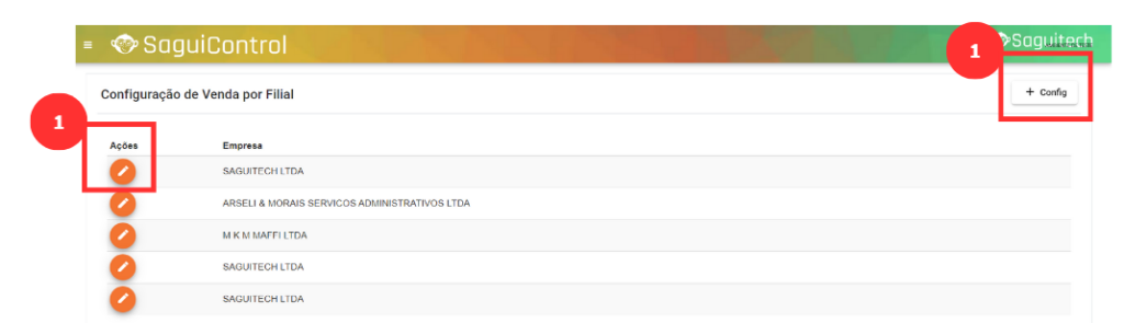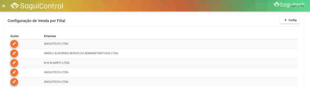 Nessa tela serão carregadas todas as configurações feitas para sua empresa ou filiais.