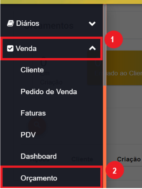 PASSO 1: Acesse a funcionalidade de orçamentos