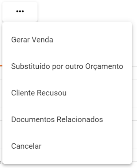 - Cancelar: O orçamento não é mais válido por qualquer que seja o motivo. Nessa opção o orçamento assumirá o status de Cancelado.