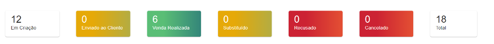 Por exemplo, um cartão mostrará quantos orçamentos estão sendo criados, outro mostrará quantos já foram enviados para o cliente, e assim por diante.