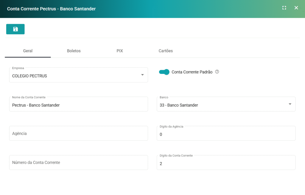- Esses campos são essenciais para definir e gerenciar as informações relacionadas às contas correntes dentro do sistema. Certifique-se de preenchê-los com precisão para evitar problemas durante transações financeiras.