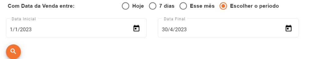 - Filtro: Nessa área é possível filtrar o período das Vendas que você gostaria de acompanhar