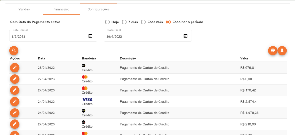 - Financeiro: Acompanhe as datas de recebimento em conta de cada uma dessas vendas;