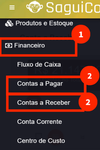 No menu principal do Viresco ERP, navegue até a seção de “Financeiro” > “Contas a Receber“ ou “Financeiro” > “Contas a Pagar“