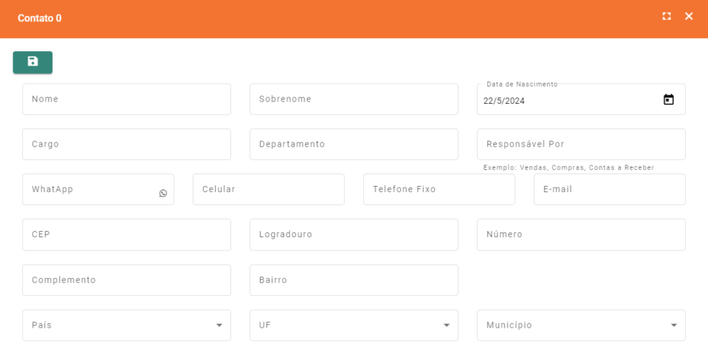 Após preencher todos os dados cadastrais do contato, você poderá salvar os dados, clicando em