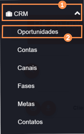 Clique no menu superior a esquerda, acesse CRM > Oportunidades