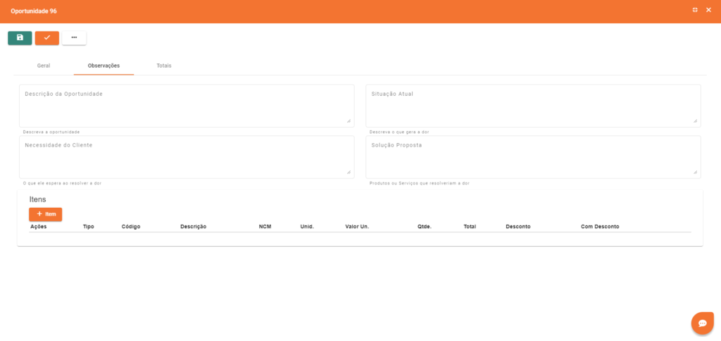 - Descrição: É uma breve descrição sobre o produto/serviço que está sendo adicionado à Oportunidade;