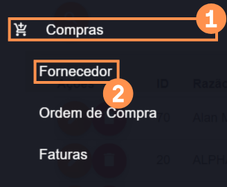 No menu superior a esquerda, acesse Compras > Fornecedor