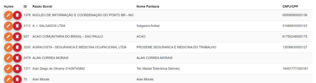 Os Fornecedores serão listados nessa tabela. Essa tabela é composta por 5 colunas: