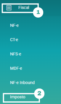 No menu superior a esquerda, acesse Fiscal > Imposto