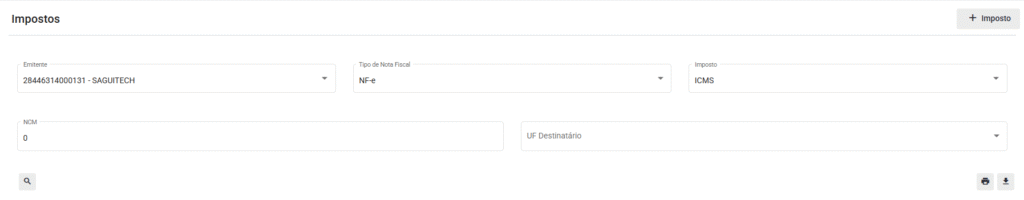 Lupa: Selecionando este ícone, os filtros selecionados serão aplicados e revelarão a Tabela de Impostos;