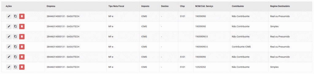 Copiar: Permite copiar um imposto cadastrado, para que você possar criar um novo Imposto com configurações semelhantes;