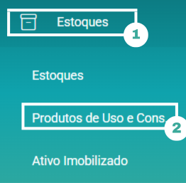 No menu superior a esquerda, acesse Estoque > Produtos de Uso e Consumo