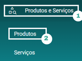 No menu superior a esquerda, acesse Produtos e Serviços > Produtos