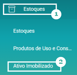 Clique no menu superior a esquerda, acesse Estoque > Ativo Imobilizado
