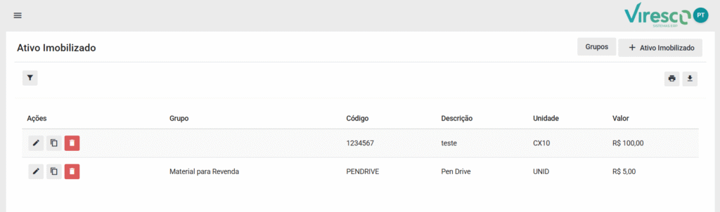 🔎 Para saber mais sobre a tela de Gestão de Ativos, acesse: Entenda a Tela de Ativo Imobilizado no Viresco ERP
