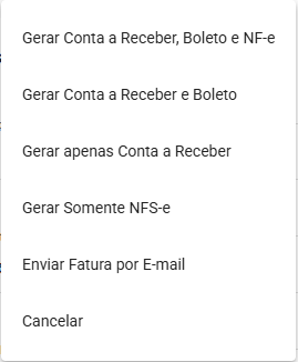 - Enviar Fatura por e-mail para o cliente. Será enviado para o e-mail do cliente cadastrado no sistema.