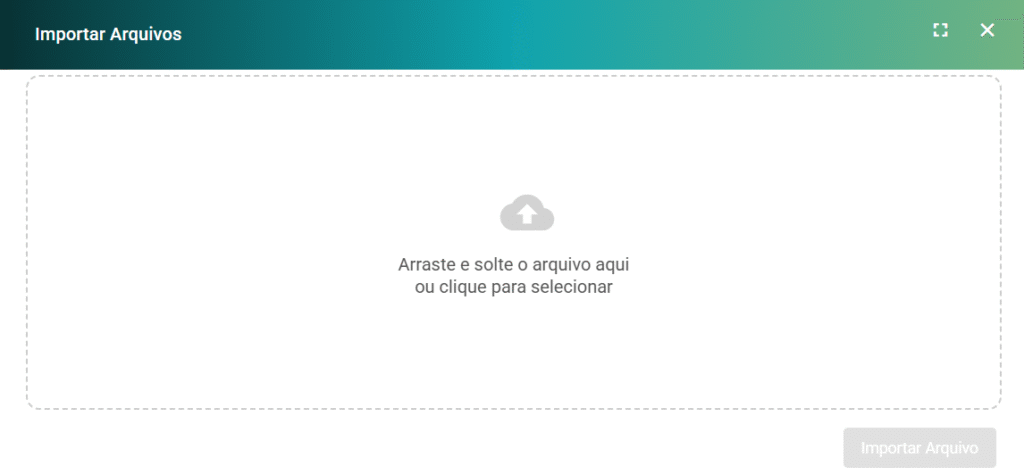 - Uma nova janela será aberta com a opção de arrastar e soltar o arquivo ou clicar para selecionar o arquivo desejado.
