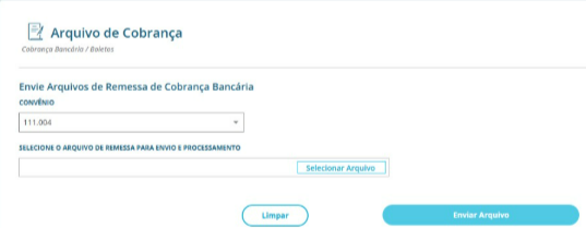 - No campo abaixo, clique em Selecionar Arquivo e carregue o arquivo de remessa gerado no Viresco.
