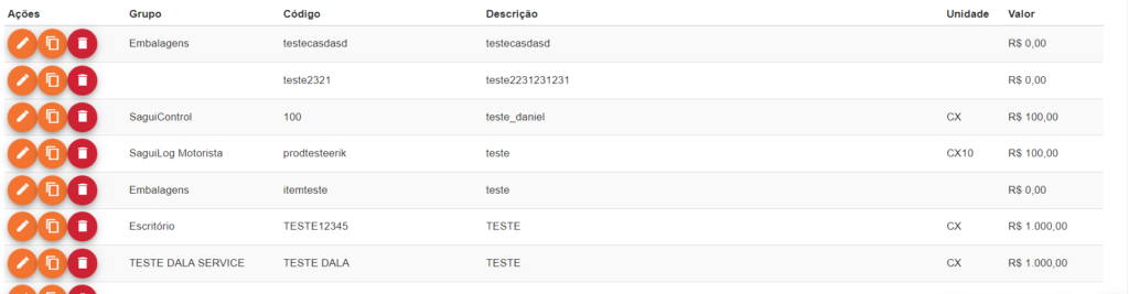 Todos os Produtos serão listados nessa tabela. Essa tabela é composta por 6 colunas: